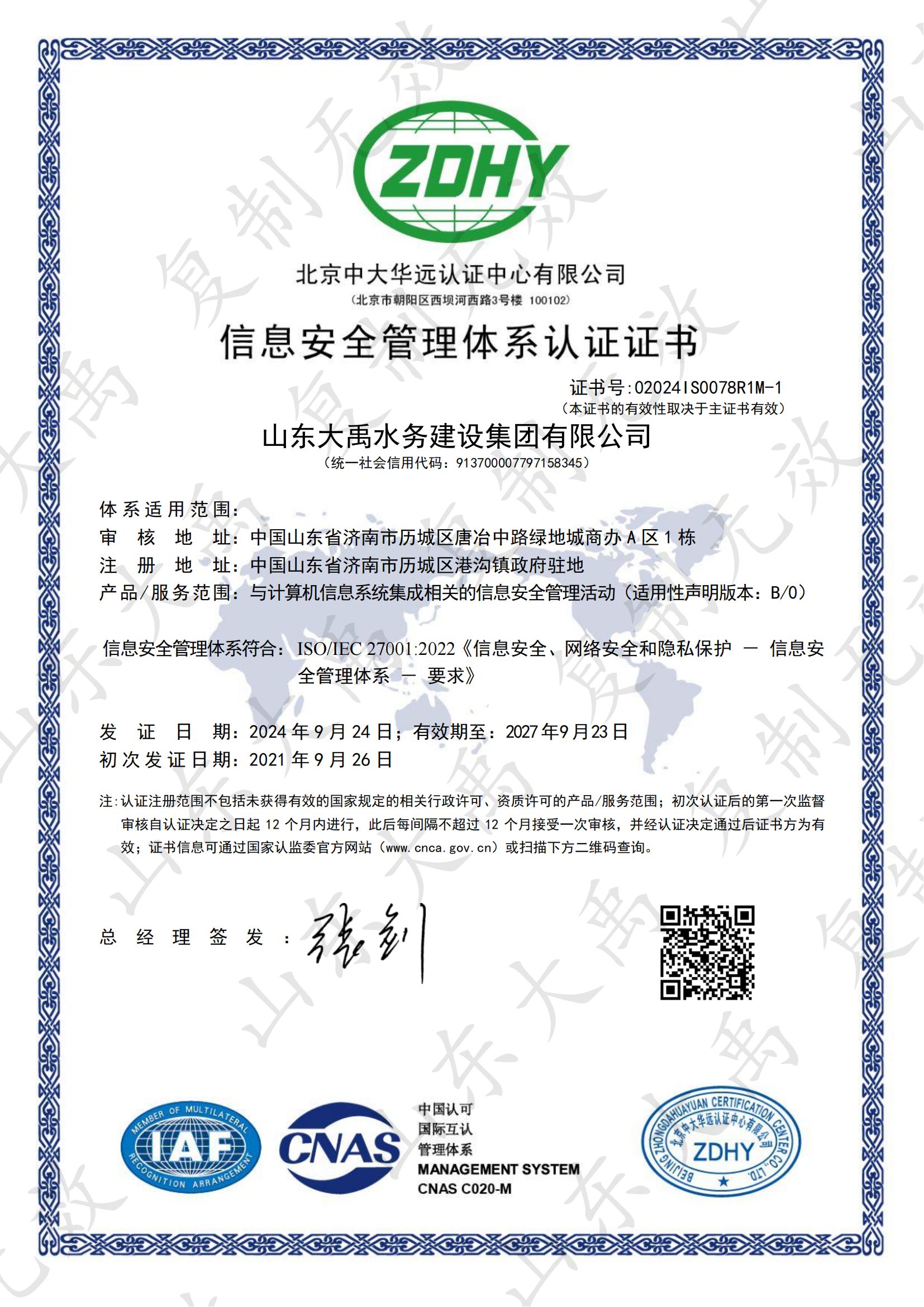 雙體系認(rèn)證證書