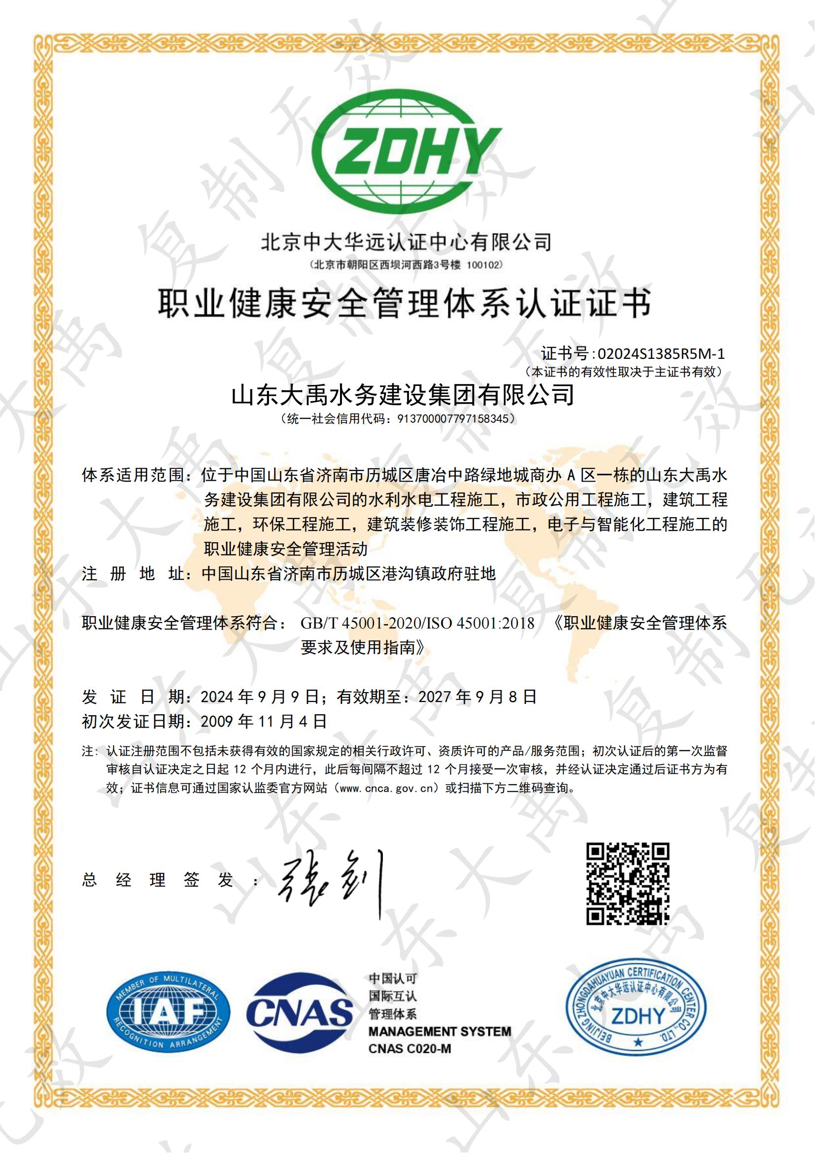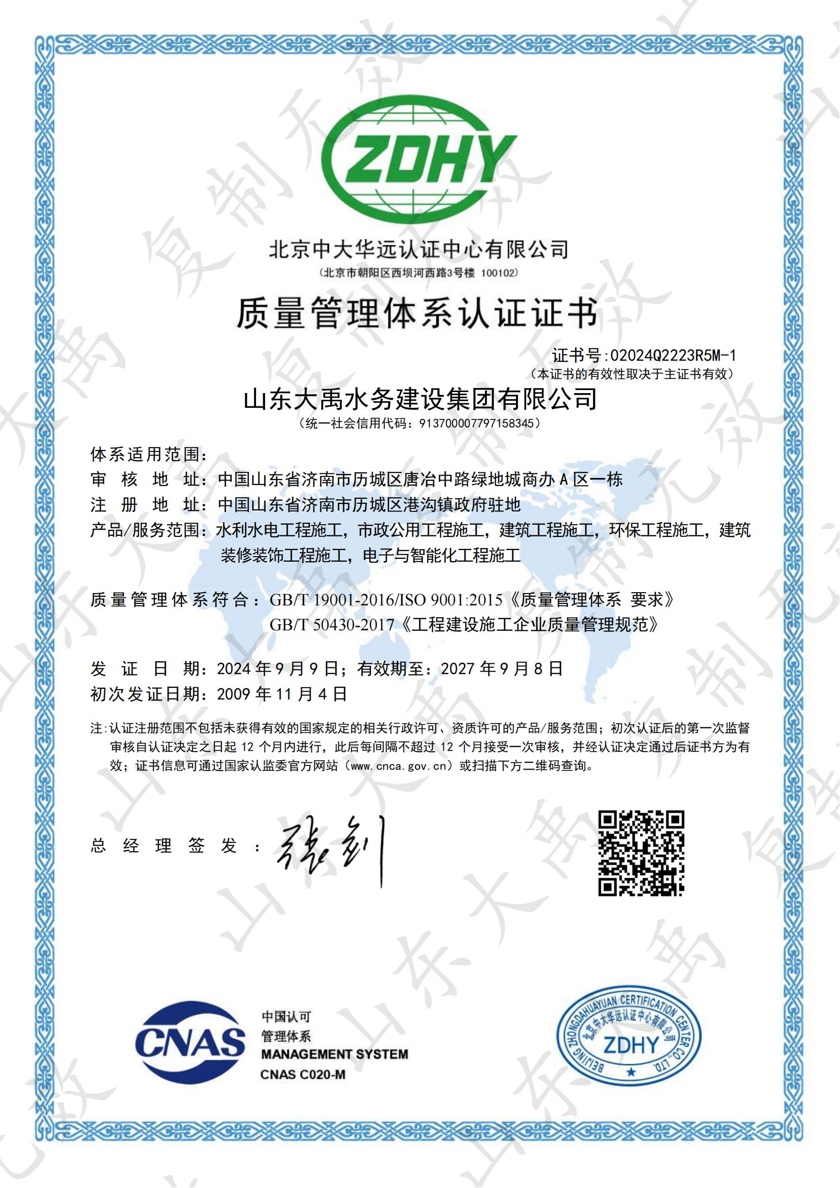 山東大禹水務(wù)建設(shè)集團(tuán)有限公司