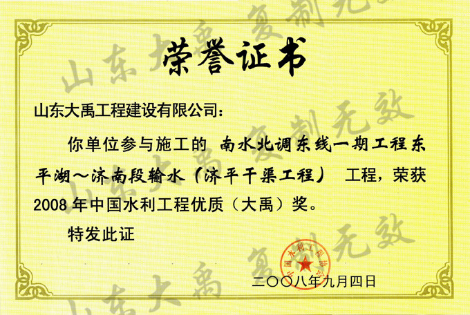 山東大禹水務(wù)建設(shè)集團(tuán)有限公司