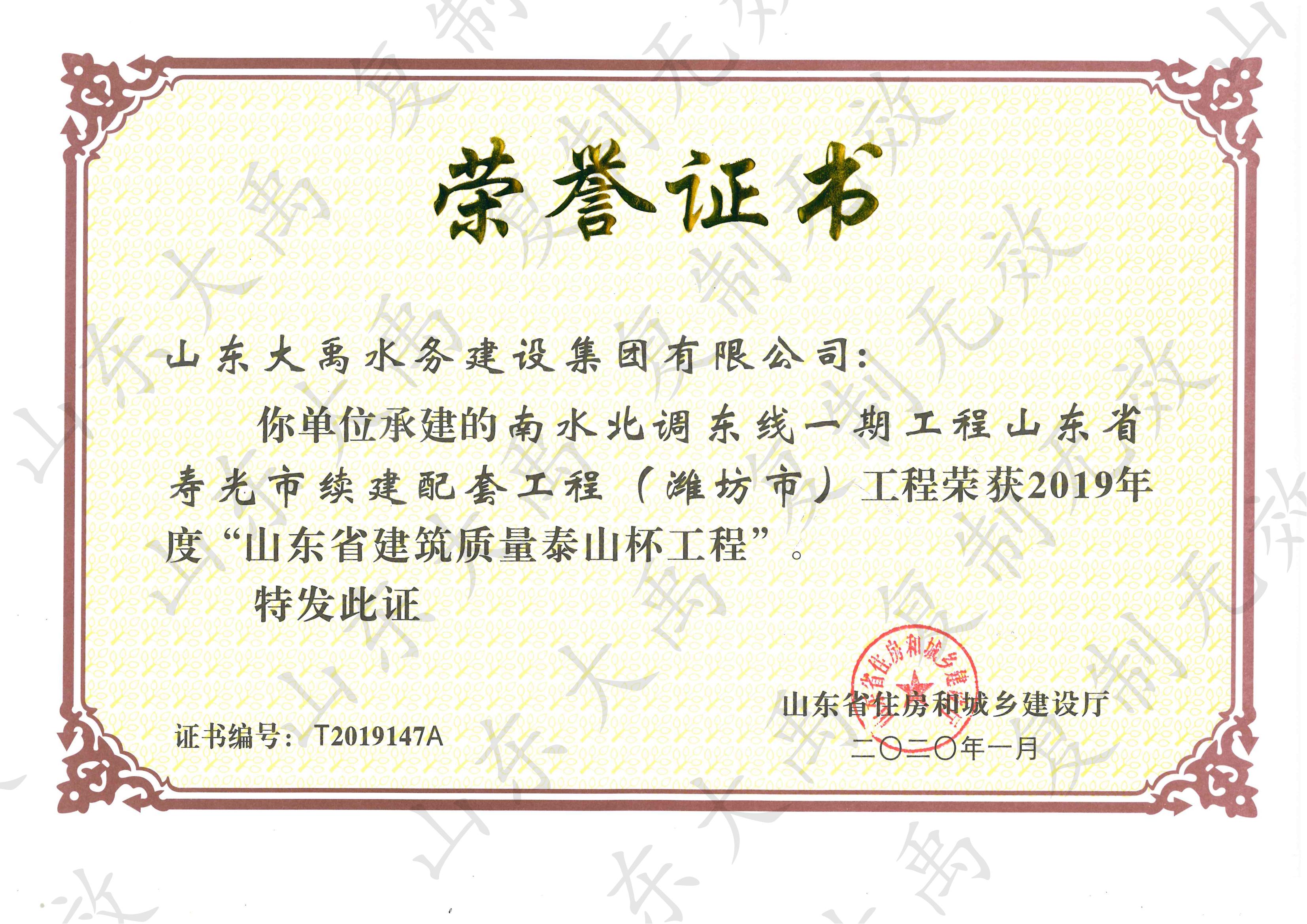 山東省建筑工程質(zhì)量“泰山杯”