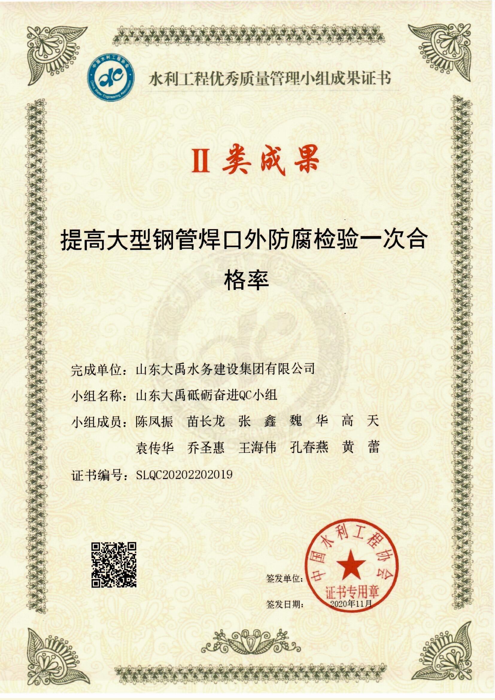 2020年QC小組II類(lèi)成果證書(shū)