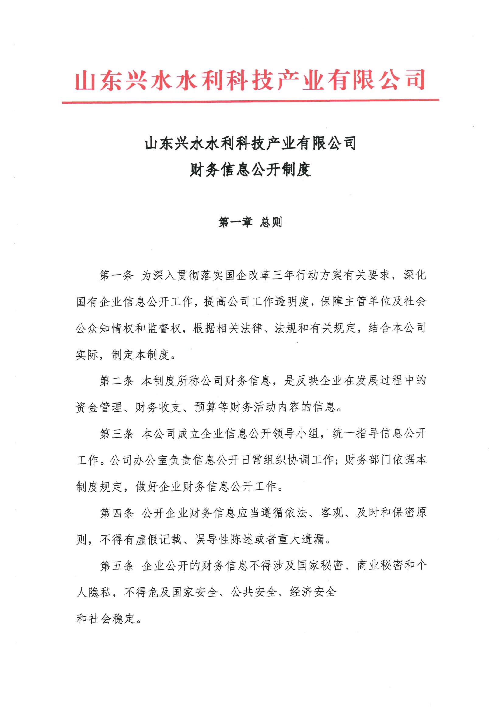 山東興水水利科技產(chǎn)業(yè)有限公司財(cái)務(wù)信息公開制度