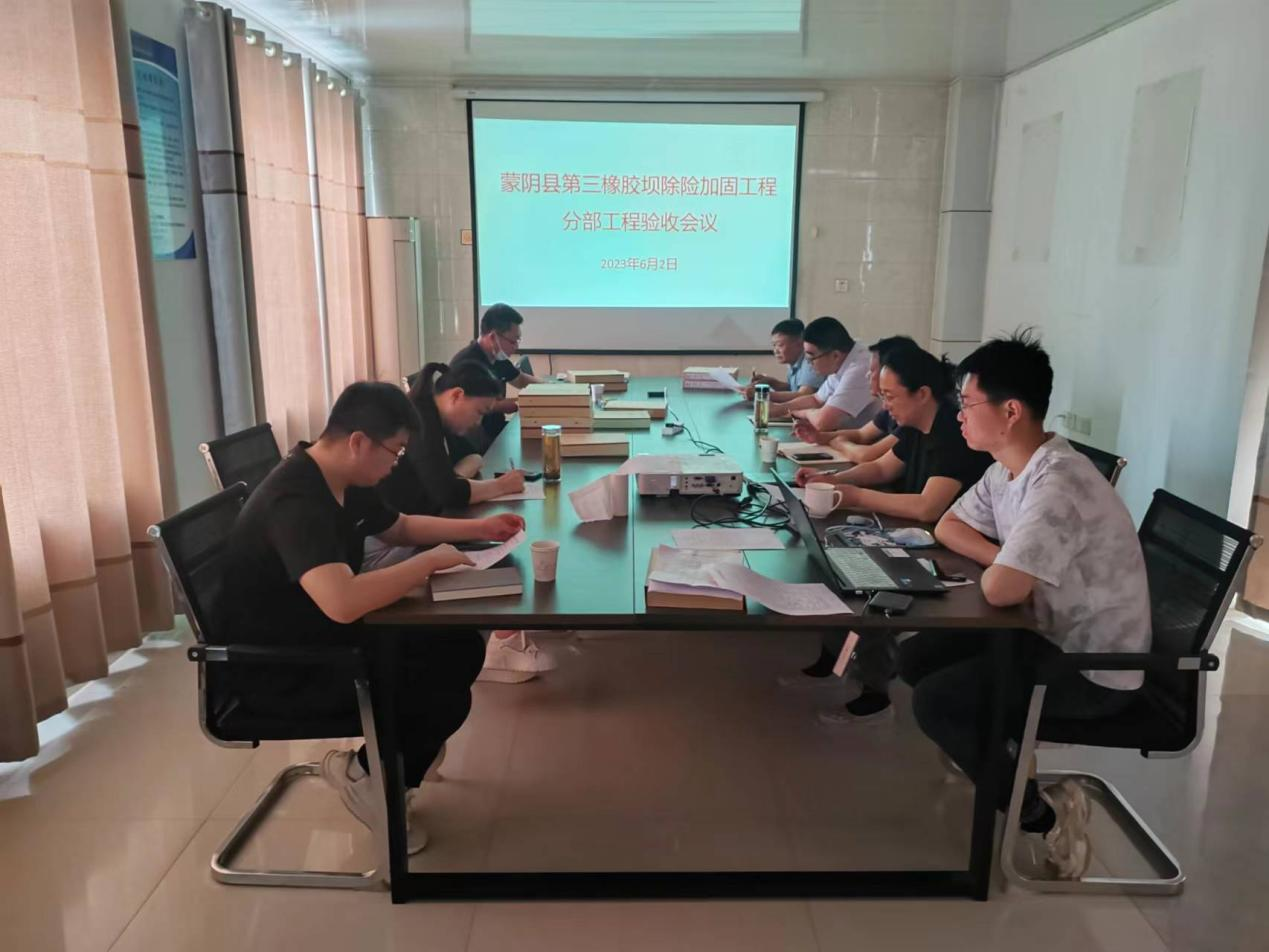 6月2日,蒙陰縣第三橡膠壩除險加固工程順利通過分部工程驗收。蒙陰縣水利工程保障中心主持驗收,山東正禹工程監(jiān)理有限公司、山東新匯建設集團有限公司、山東龍躍興設計集團有限公司、臨沂正平質(zhì)量檢測有限公司、山東大禹水務建設集團有限公司等單位的專家和代表組成驗收工作組,蒙陰縣水利局水利基本建設工程質(zhì)量監(jiān)督站派員列席會議。