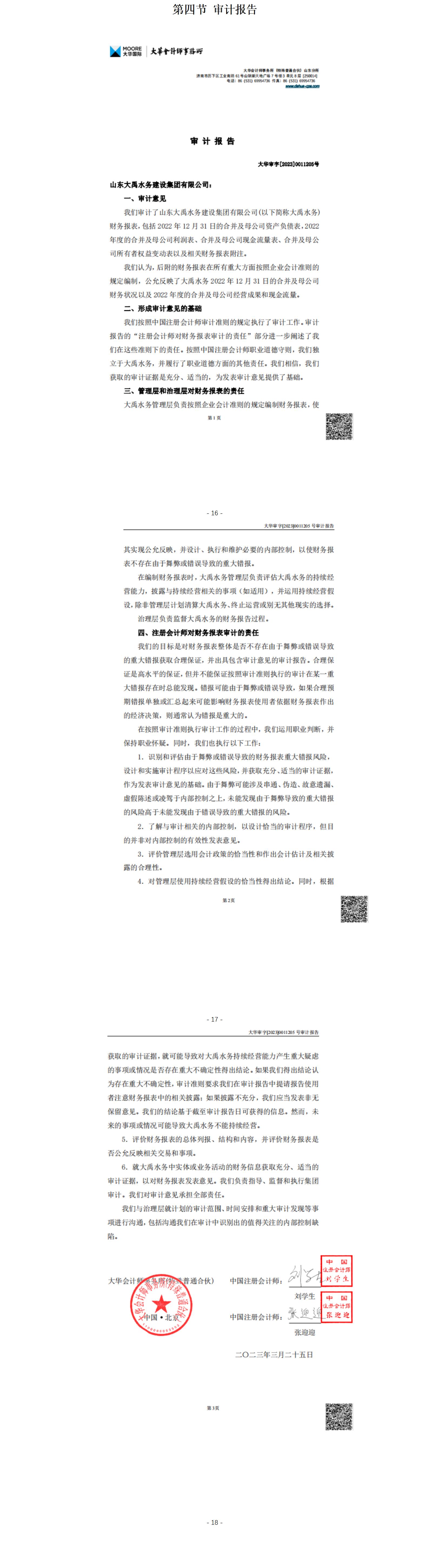山東大禹水務(wù)建設(shè)集團有限公司2022年度財務(wù)重大信息公告