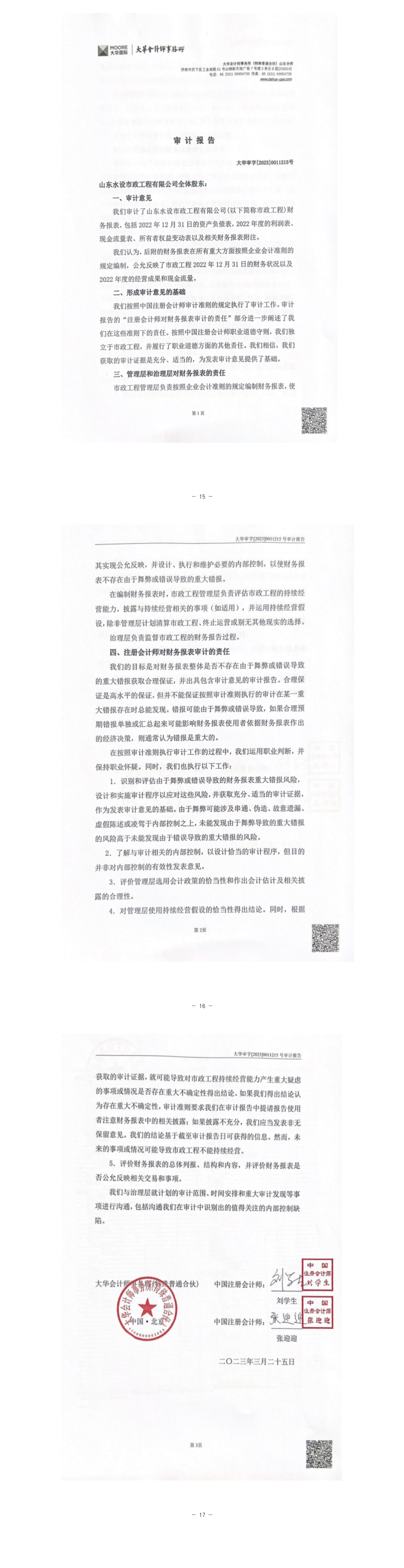 山東水設(shè)市政工程有限公司2022年度財(cái)務(wù)重大信息公告