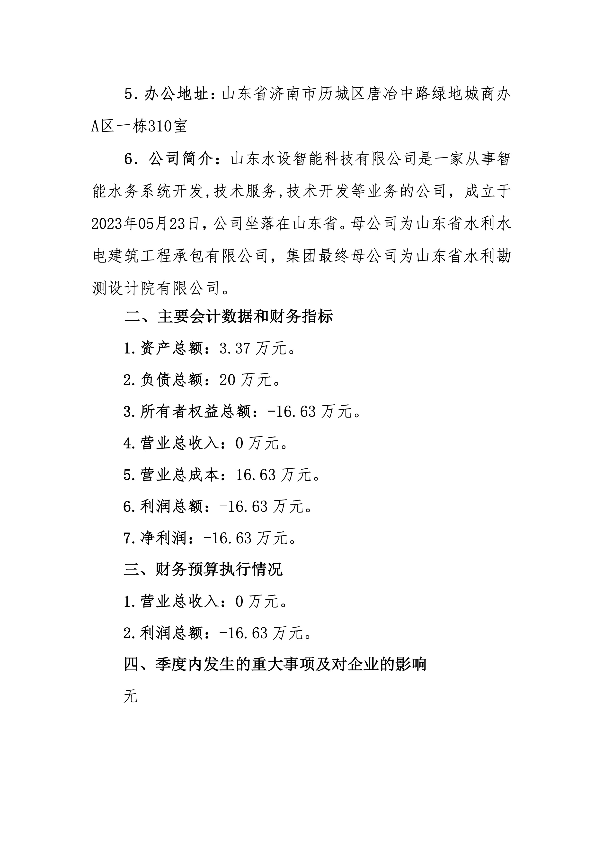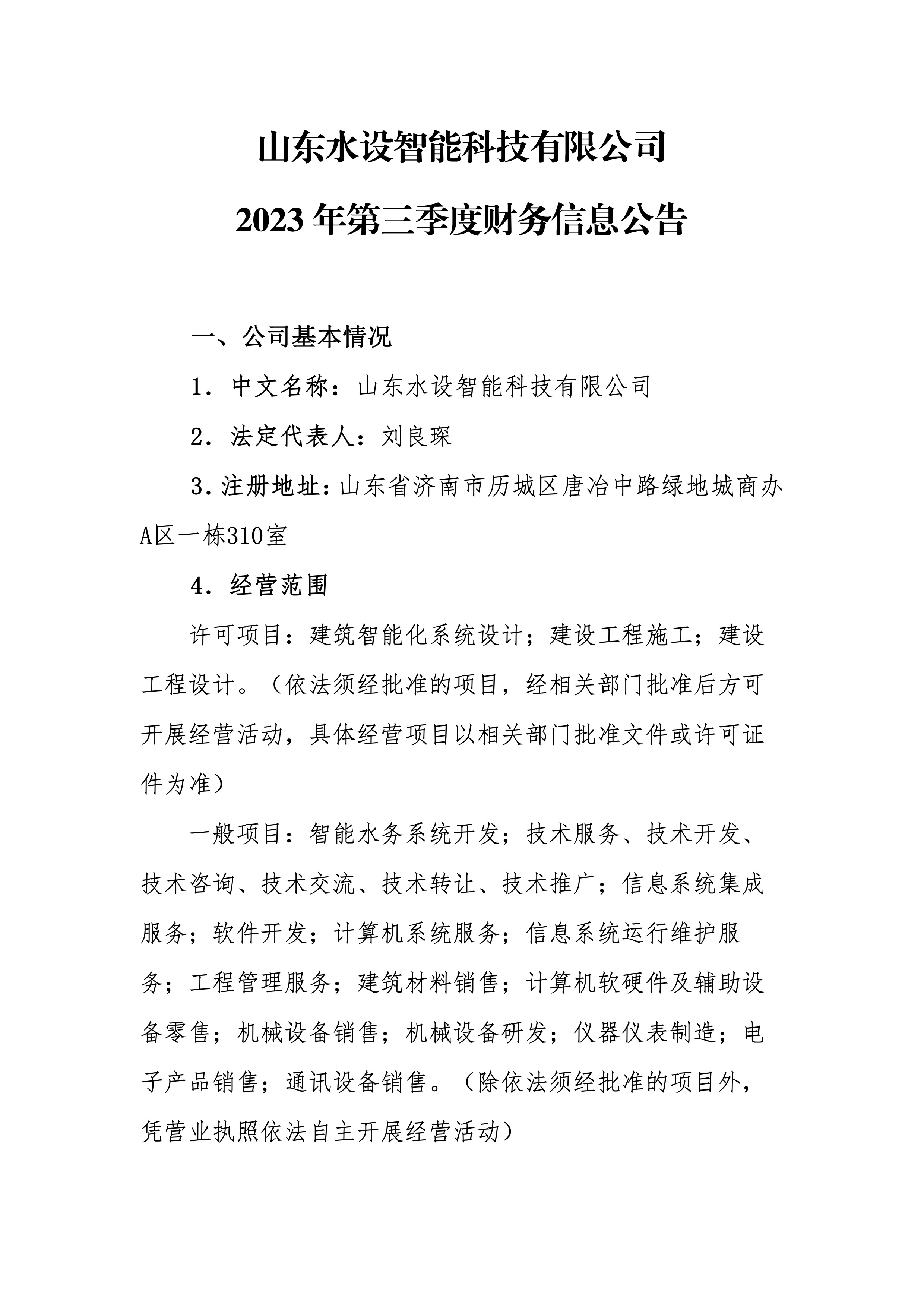 山東水設(shè)智能科技有限公司2023年第三季度財(cái)務(wù)信息公告