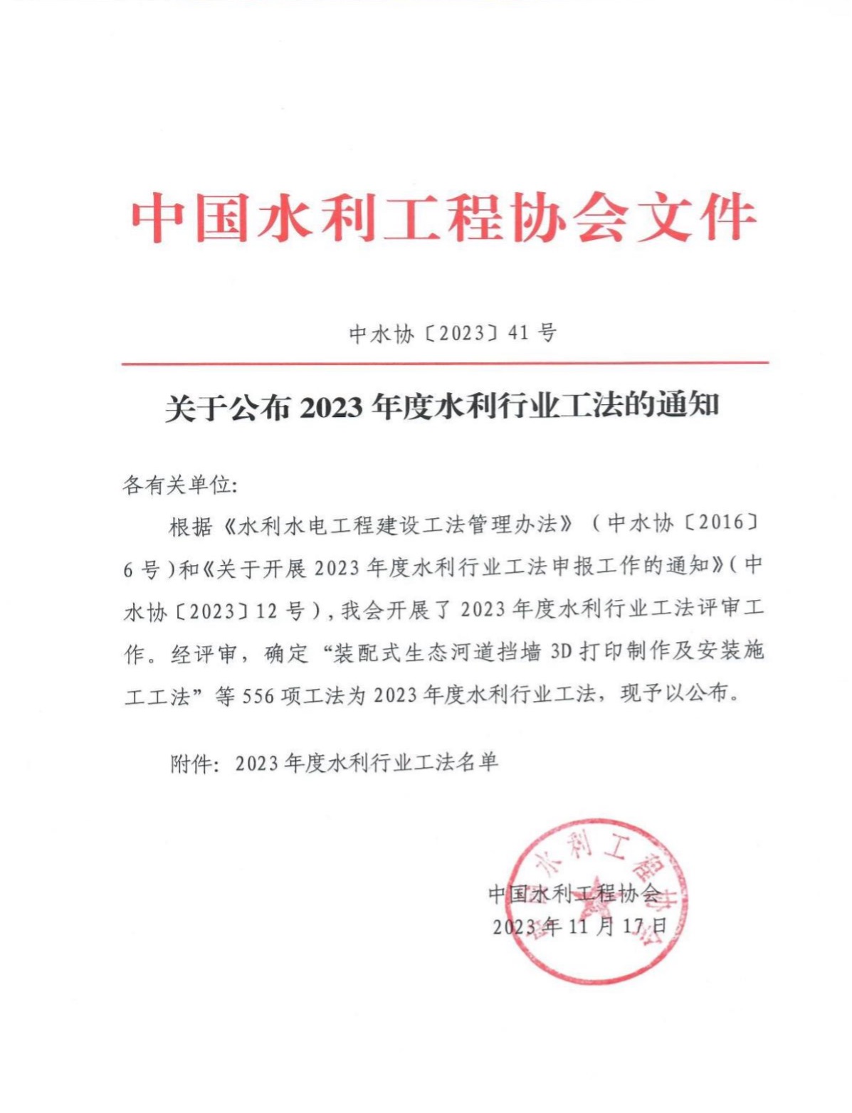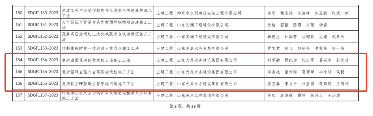 近日,集團公司申報的《復雜強風巖層入巖高壓旋噴樁施工工法》《復雜曲面現(xiàn)澆扶壁式擋土墻施工工法》《復雜軟土PE管道拉管穿越河道施工工法》《格賓石籠排水調節(jié)池濾水堤施工工法》等四項工法獲評中國水利工程協(xié)會“2023年度水利行業(yè)工法”。