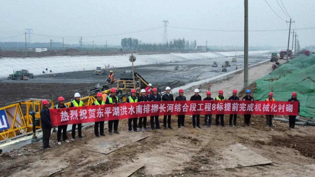 冬日暖陽升,東平湖波光粼粼、如詩如畫,柳長河結(jié)合段施工現(xiàn)場,熱火朝天、機(jī)器轟鳴,有一大批工程建設(shè)者正奮戰(zhàn)在一線。自9月16日開工,襯砌機(jī)9月24日進(jìn)場以來,經(jīng)過數(shù)日從黎明到黃昏、又從黃昏到黎明的不懈奮斗,11月10日,京杭運(yùn)河濟(jì)寧至東平段航道“三改二”(柳長河段)工程與東平湖老湖區(qū)洪水相機(jī)南排工程航運(yùn)與洪水南排結(jié)合段施工8標(biāo)(簡稱南水北調(diào)柳長河結(jié)合段工程施工8標(biāo))機(jī)械化襯砌護(hù)坡施工任務(wù)率先圓滿完成!