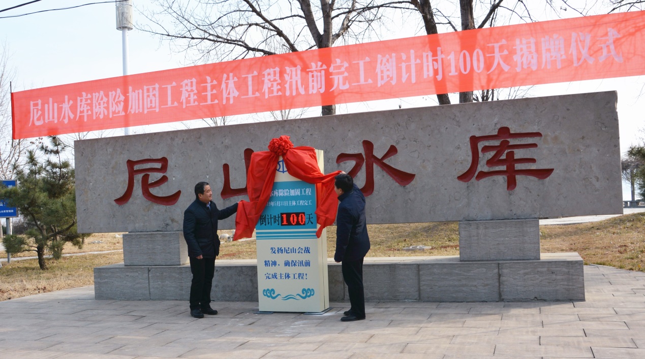2019年2月20日,尼山水庫除險加固工程100天倒計時揭牌儀式在施工現(xiàn)場隆重舉行。儀式由曲阜市尼山水庫管理局主持,曲阜市副市長劉一山、水務局局長張樹生出席儀式。