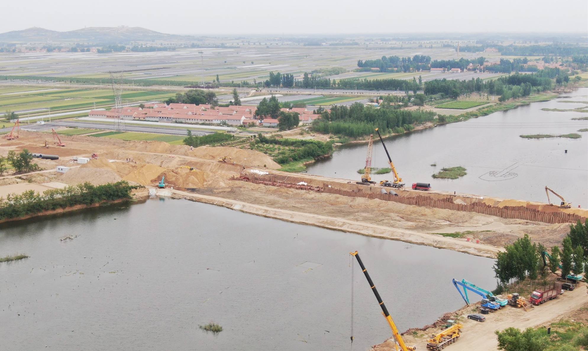 膠萊河工程原計劃進行大開挖。如按原方案開挖,淤泥層厚度過厚,勢必引起滑坡,造成對現有圍堰的破壞。項目部不等不靠,與業(yè)主、代建、設計及監(jiān)理單位共同研究,重新編制膠萊河施工方案,并組織專家論證。新方案確定后,項目部迅速組織機械設備進場,立即組織實施,采用鋼板樁支護,長臂挖掘機挖土。打樁、開挖、支護、基底驗收、管道安裝、回填、混凝土包封等工序流水作業(yè),壓茬進行。項目部全體員工加班加點,蹲守施工現場,科學合理調度施工人員,白天增加人員數量,全面展開工作,黑夜架設大功率射燈,全方位保障夜間施工。在集團的大力支持與參建各方的共同努力下,施工方案得到進一步優(yōu)化,施工進度得到合理加快。