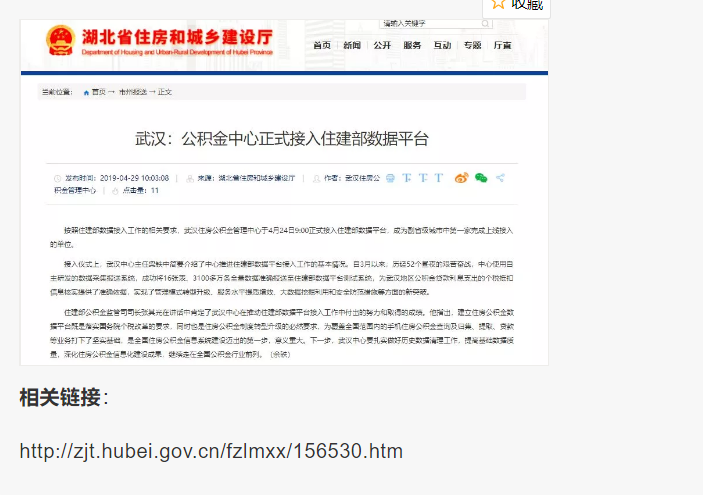 4月29日,湖北省住建廳官網(wǎng)發(fā)布了武漢住房公積金管理中心正式接入住建部數(shù)據(jù)平臺的新聞。武漢住房公積金管理中心于4月24日上午9:00正式接入住建部數(shù)據(jù)平臺。