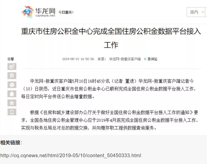 4月26日,重慶市住房公積金中心順利完成全國住房公積金數(shù)據(jù)平臺接入工作,向全國住房公積金數(shù)據(jù)平臺傳送了全部公積金存量數(shù)據(jù)(約3.255億條)。