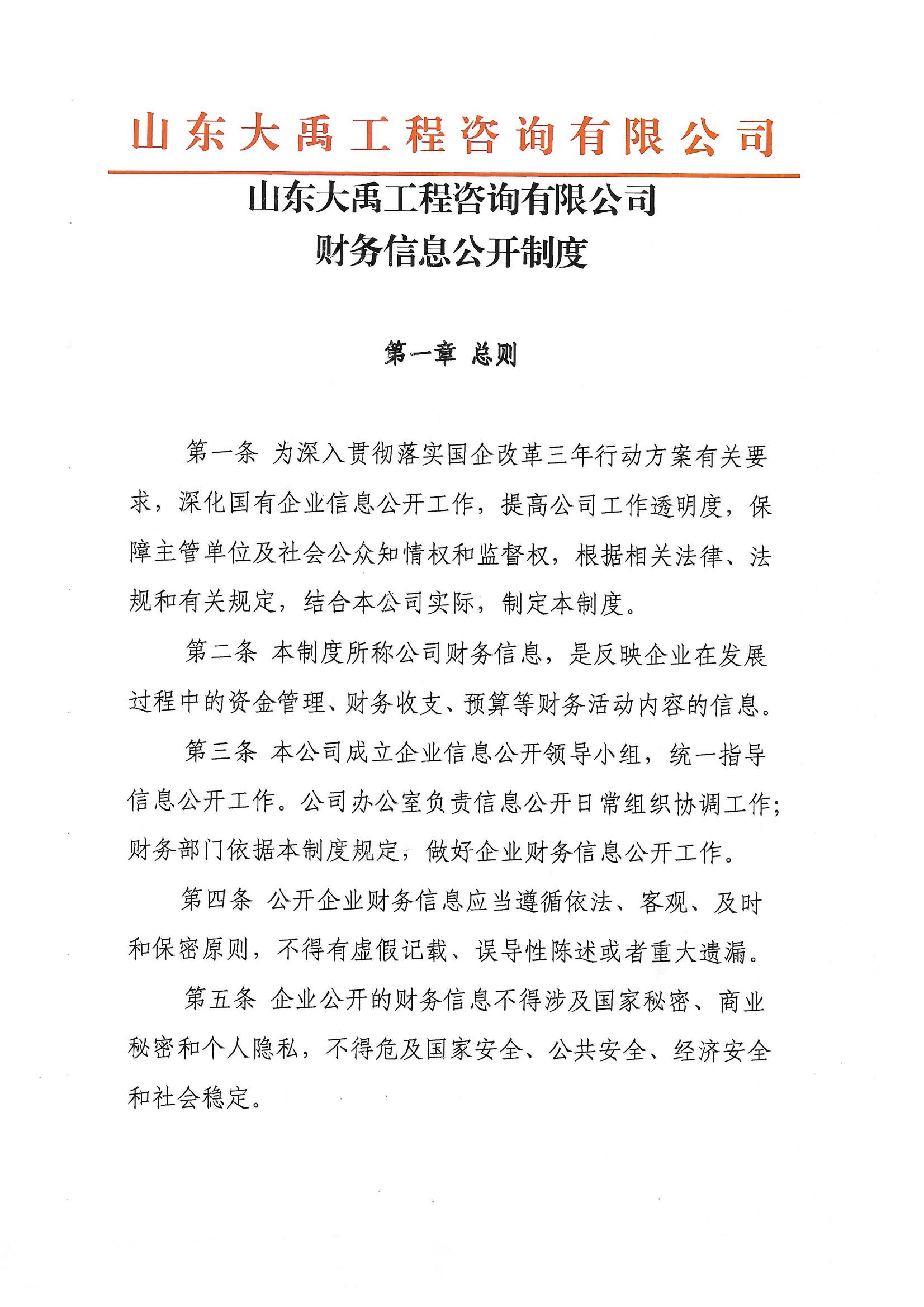 山東大禹工程咨詢有限公司財(cái)務(wù)信息公開制度