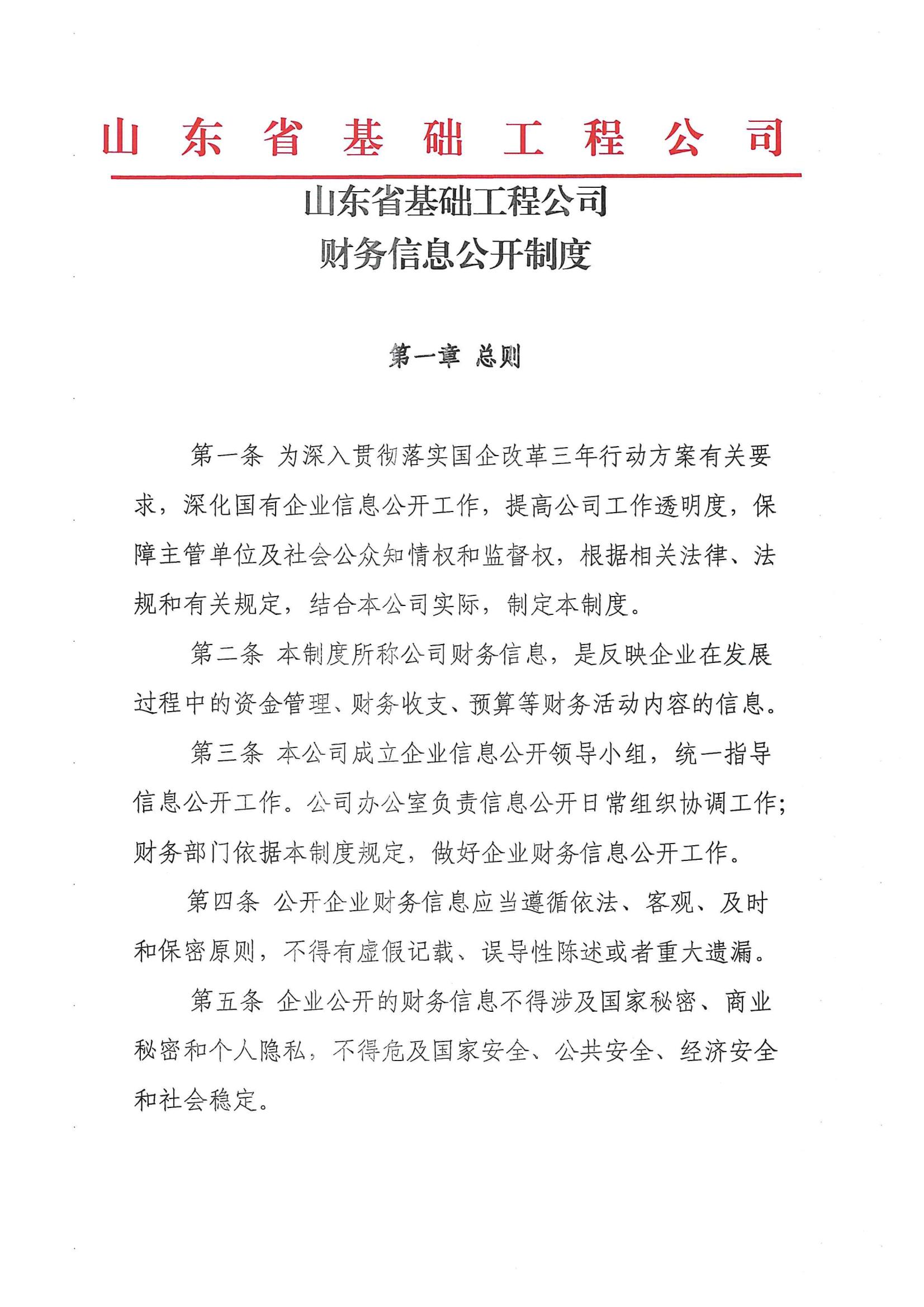 山東省基礎(chǔ)工程公司財務(wù)信息公開制度