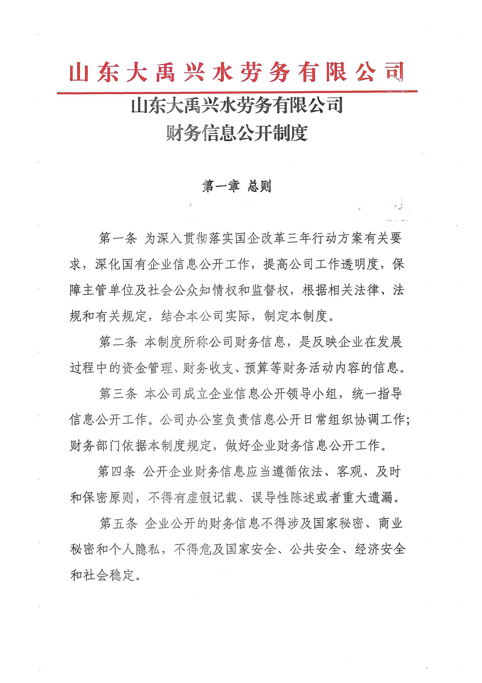 山東大禹興水勞務(wù)有限公司財(cái)務(wù)信息公開(kāi)制度