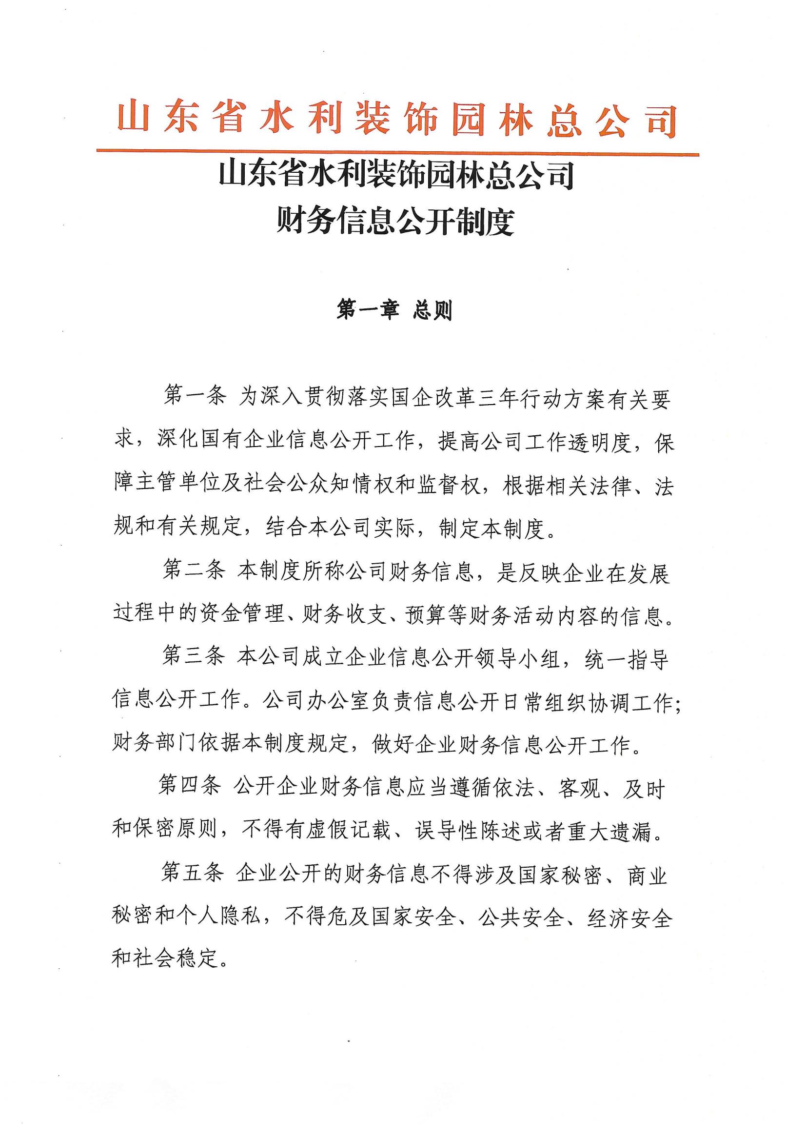 山東省水利裝飾園林總公司財(cái)務(wù)信息公開(kāi)制度