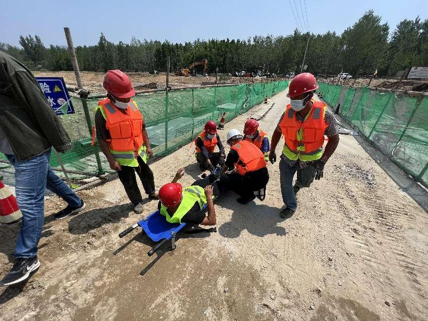 6月18日上午,蒙陰縣銀麥河治理工程項目開展防汛應(yīng)急演練,該項目的水行政主管部門、發(fā)包方、監(jiān)理方等單位派員參加。演練以汛期遭遇強降雨、施工現(xiàn)場積水嚴重為背景,模擬了人員和機械設(shè)備撤離、受傷人員臨時救治等科目。演練活動持續(xù)近兩小時,各小組密切配合,現(xiàn)場井然有序,應(yīng)急隊伍順利完成了預(yù)案中的各項任務(wù),達到了預(yù)期目的,演練得到參建各方的充分肯定。