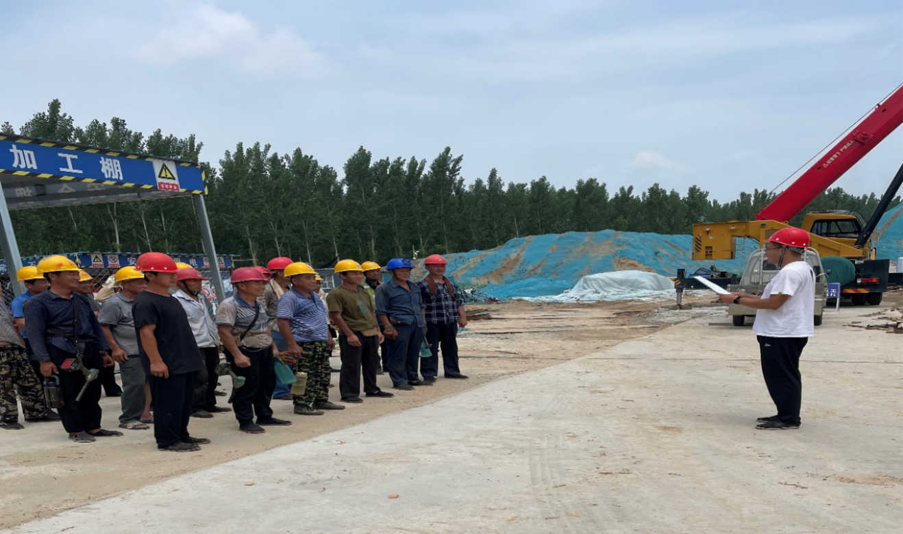 6月28日上午,項(xiàng)目部全體施工人員在鋼筋加工棚集合,項(xiàng)目負(fù)責(zé)人就此次消防、防汛演練開展的目的、內(nèi)容、意義作簡要說明,宣布演練正式開始。