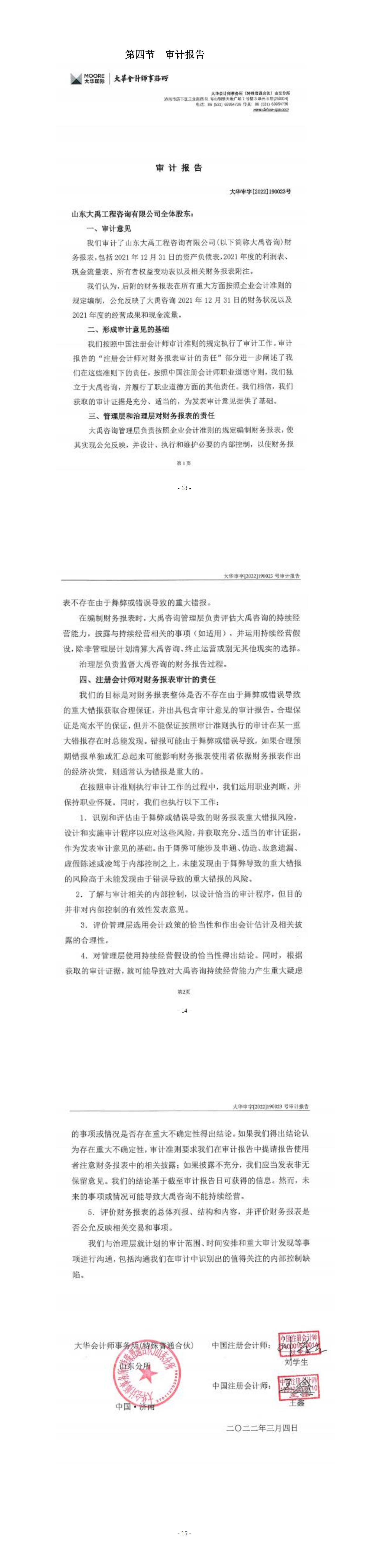 山東大禹工程咨詢有限公司2021年度財(cái)務(wù)重大信息公告