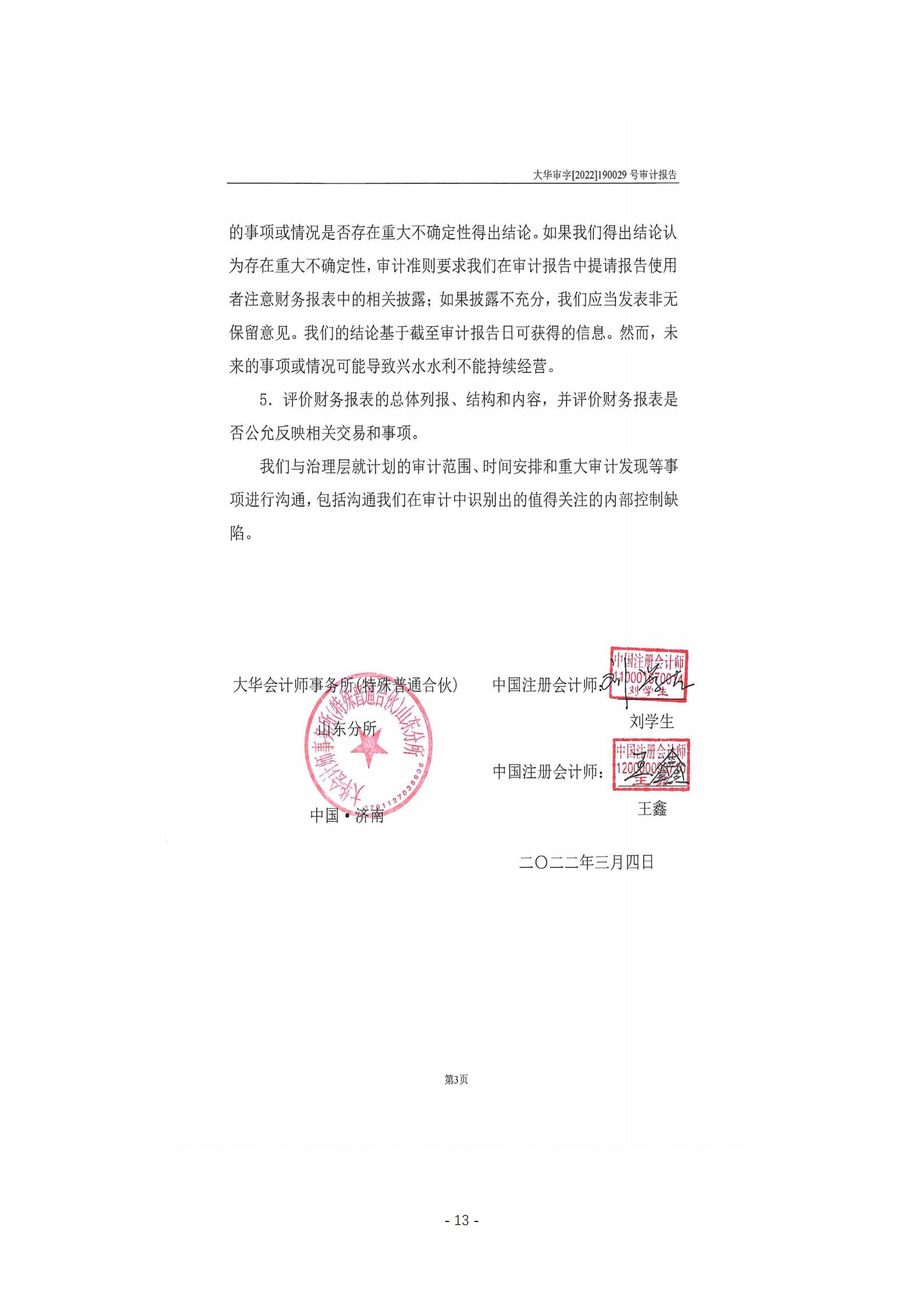 山東興水水利科技產(chǎn)業(yè)有限公司2021年度財務(wù)重大信息公告
